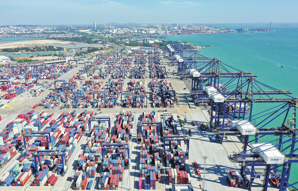 这是11月28日拍摄的洋浦港,是海南自贸港 10 个“二线口岸”之一(无人机照片)。新华社记者 郭程 摄