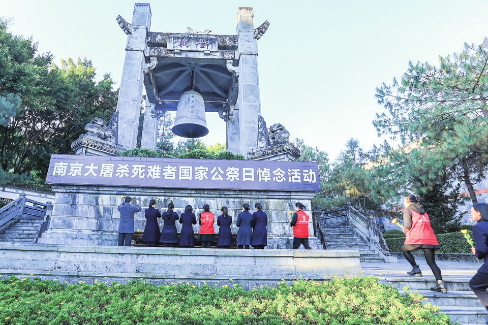 “我们热爱和平,不代表我们会遗忘。”外卖骑手王计兵作为撞钟者之一,语气凝重,“钟声响起时,庄严而沉重。我们要万众一心建设好国家,历史绝不容重演。”南京大屠杀幸存者吕金宝的女儿吕瑞云手捧父亲遗像动情地说:“今天参加仪式,不仅缅怀逝者,更感受到我们祖国的强大。”