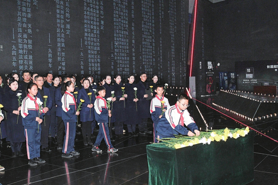 “日军暴行铁证如山,但至今仍有人企图否认历史。”中国人民抗日战争纪念馆副研究馆员韩亮语气沉重。青年学子在悼念活动现场庄严宣誓,随后在12.13米长卷上留言:“不忘历史接续奋斗”“民族复兴国家繁荣世界和平”……