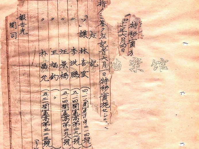 记录林喜云、李洪鹏、汪景桥、王福钓、朴昌允被“特别移送”的报告档案。(吉林省档案馆供图)