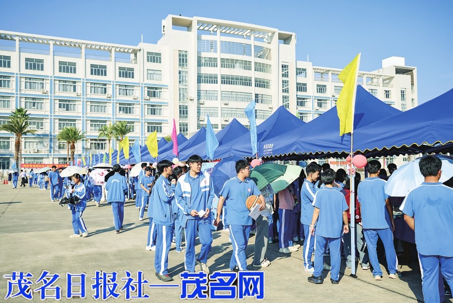 茂名晚报讯 记者 和沛蓉 冬日暖阳映青春,职场初探启新程。12月11日下午,茂名市电白中学海韵广场热闹非凡,以“筑梦青春‘职’引未来”为主题的首届模拟招聘会举行,高二年级1500余名学生沉浸式体验职场招聘场景,提前规划生涯发展,积累职场实践经验。