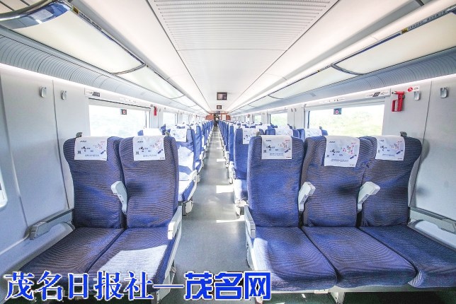 9时25分,列车组缓慢停靠在站台。登上列车,车厢内部安静而舒适。列车启动,平稳得几乎毫无察觉。只有窗外匀速后退的站台立柱,提醒着我们已驶离茂名南站。车上是媒体同行和其他人员,大家或低声交流,或举着设备记录,车厢内是克制的兴奋与专注。