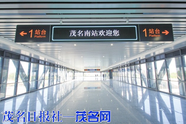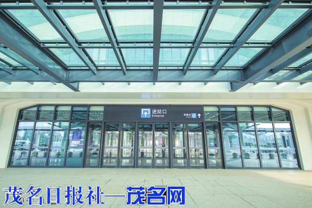 站厅内宽敞明亮,波浪形的吊顶设计呼应着“滨海绿城”的意象。透过巨大的玻璃幕墙向外望去,站前广场的施工已进入精细化收尾阶段,更远处,是塔吊林立的茂名新城建设现场。这里的一切都是新的,充满着想象的空间。