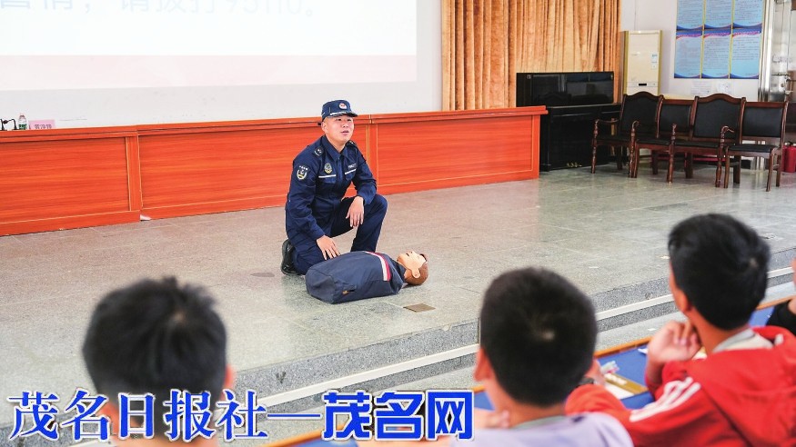 防溺水培训直击痛点难点,突出“发现溺水者后该如何施救”实操特色。执法员陈佳乐以近期全国典型溺水事故为警示,深入剖析溺水高发原因,逐条拆解防溺水“六不准”原则,重点强调“不盲目下水、不手拉手结链施救”的安全底线。在实操环节,陈佳乐邀请学生主动上台,借助专业急救假人,现场示范心脏复苏的按压位置、力度倾斜、人工呼吸配合等关键步骤,手把手纠正学生操作中的错误动作。