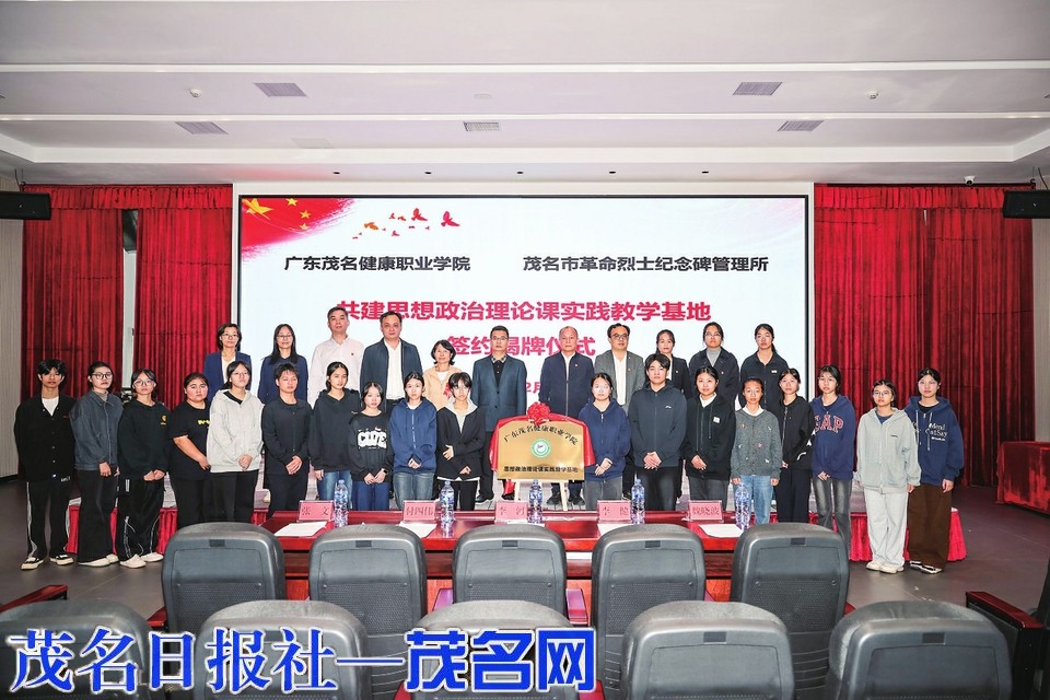 茂名晚报讯 为推动红色资源与高校思政教育深度融合,让红色基因在青年一代心中扎根生长,近日,茂名市烈士陵园与广东茂名健康职业学院联合共建的“思想政治理论课实践教学基地”签约揭牌仪式,在茂名市英烈事迹展多功能宣讲厅举行。茂名市退役军人事务局领导、茂名市烈士陵园负责人、广东茂名健康职业学院党委专职副书记及学院相关部门负责人、师生代表参加仪式。