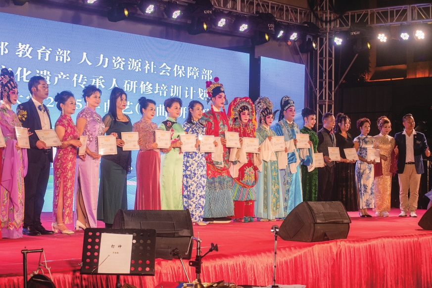 茂名晚报讯 近日,由文化和旅游部、教育部、人力资源社会保障部联合实施的“中国非物质文化遗产传承人研修培训计划”深圳职业技术大学2025年曲艺(粤曲)研修班汇报送戏演出,在广东渔网小镇——高州市石鼓镇及茂南区袂花镇江边公园圆满落幕。深圳市茂名商会文体委黄强主席带领研修班全体学员及授课老师,于12月14日、15日晚间,为当地群众献上了两场浸润粤韵、传递非遗温度的文化盛宴。
