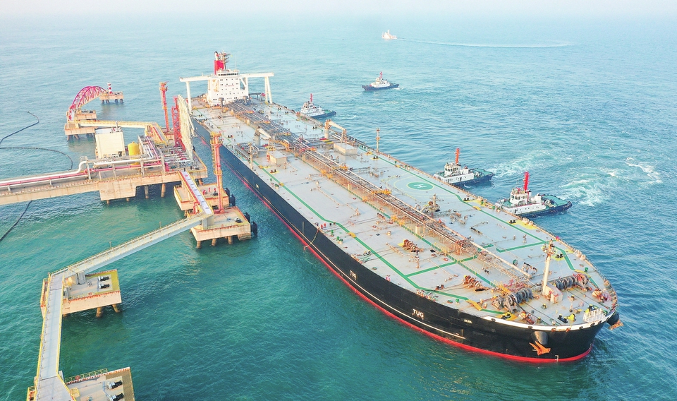 12月18日,一艘装载着石化原辅料的外籍船舶泊入国投洋浦油储码头30万吨级原油泊位(无人机照片)。