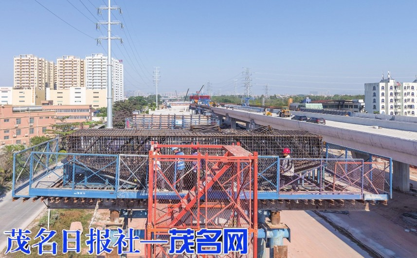 茂名晚报讯 钢箱梁架设进入收尾阶段,辅道施工正同步加快推进……时值12月中旬,茂名市民大道立交建设现场一片繁忙,大型机械运转不息,施工人员有序作业,各项工序均按计划节点高效推进。目前,立交桥整体轮廓已清晰呈现,项目正全力冲刺2026年年初实现主线桥贯通的目标。