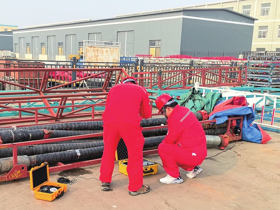 安徽中科昊音智能科技有限公司工作人员正在对油田软管管道进行声纹AI检测。受访者供图