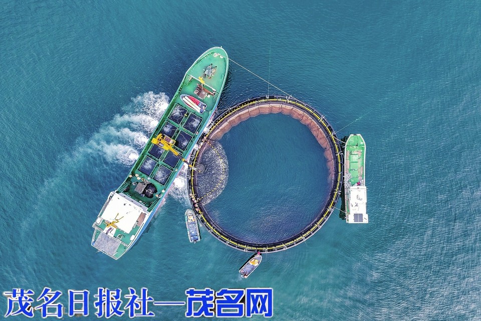 在滨海新区海洋牧场,金鲳鱼集中捕捞现场。茂名日报社全媒体记者 吴昊 摄
