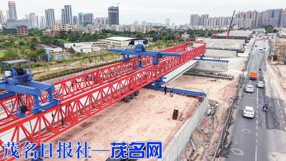 大型架桥机架设箱梁。茂名日报社全媒体记者张波摄