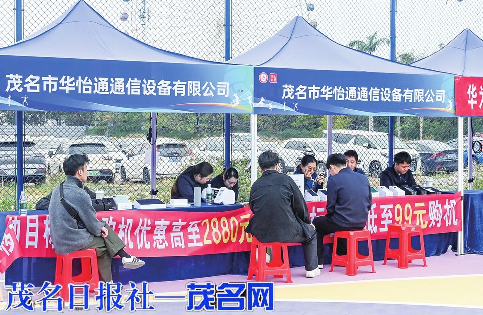 与激烈赛事同步进行的,是场外同样火热的“暖冬消费季”活动。体育馆周边,四大运营商科技展区、电子与家电优品补贴区、茂南好物与美食市集等人气旺盛。中国广电展示的智能机顶盒支持多种方言AI交互,吸引不少家庭驻足体验;中国移动、中国电信、中国联通则推出宽带套餐、流量卡及网络服务券等惠民福利。数码家电集市上,华为、TCL等品牌产品以及本土企业提供的特色礼品,通过抽奖、游戏等方式送至市民手中,真正实现了“观赛享乐趣、消费得实惠”。