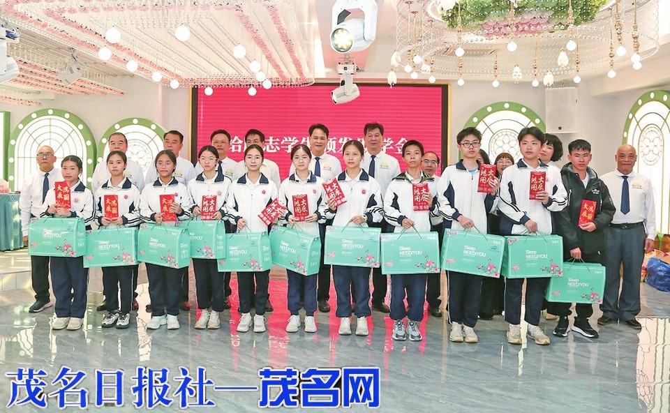 茂名市友谊之家爱心助学协会向励志学生代表颁发助学金。茂名日报社全媒体记者 岑稳 摄