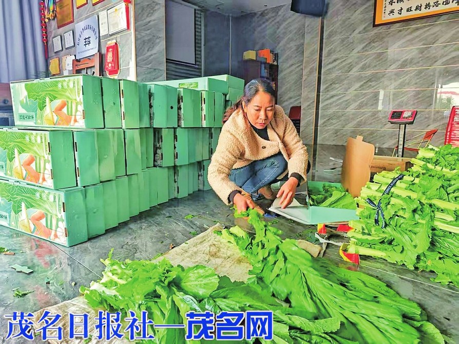 茂名晚报讯记者和沛蓉通讯员陈子楷近期频繁的冷空气,让信宜市钱排镇的大芥菜进入了风味最佳期。1月2日,在信宜市钱排镇白马村,村干部、新农人李兰娇一边熟练地打包翠绿的大芥菜,一边介绍:“这几天通过网络销售,每天能卖出几百斤。天气越冷,芥菜越甜,卖得越火。”
