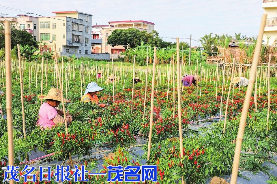 茂名晚报讯 记者陈美任 通讯员杨嘉丽 沈张健近日,信宜市水口镇赤坎村的工业辣椒种植基地迎来集中采摘期。连片的辣椒地里,十余位村民穿梭其间,忙着采摘、分拣,昔日的撂荒地如今焕发出勃勃生机,在家门口实现就业增收的村民们,纷纷为这个惠民项目点赞。