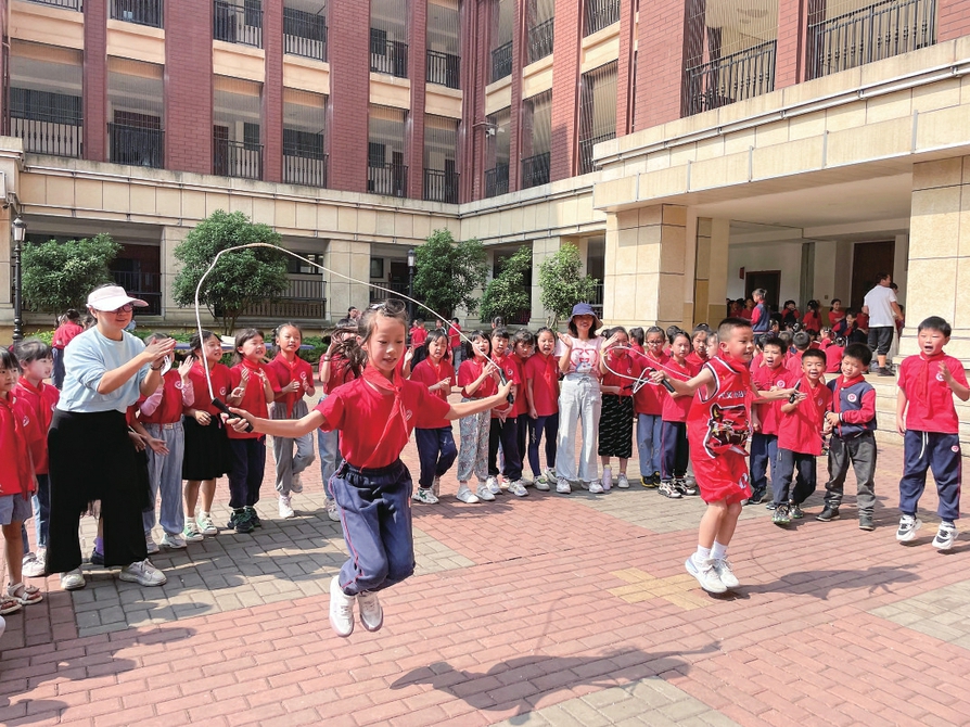 韩忠源说,为了进一步强化学生体育技能考核和体质健康测评,他们根据学生的年龄特点,构建了学生综合素养评价系统。2024年该校学生超重肥胖率为8.9%,低于当前我国6岁至17岁儿童青少年约为19%的超重肥胖率。