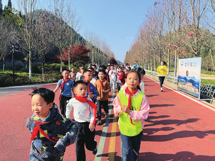 1月4日上午9时许,贵州省黔西南州兴义市第八中学附属小学3500余名师生,沿着贵州醇景区马拉松赛道迈开了脚步。
