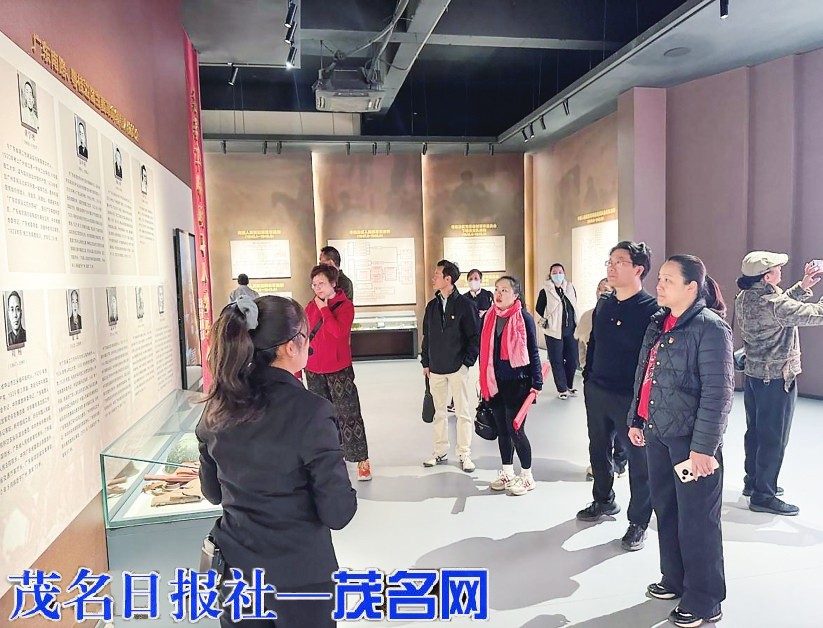 活动首站走进焕新升级的广东南路革命化州教育基地。在讲解员引导下,党员们沉浸式参观沙盘展区、革命诗文墙等特色展陈,透过史料和图文实物,深切感悟化州作为一类革命老区县的红色底蕴。随后,全体党员瞻仰革命烈士碑并重温入党誓词,筑牢育人初心。