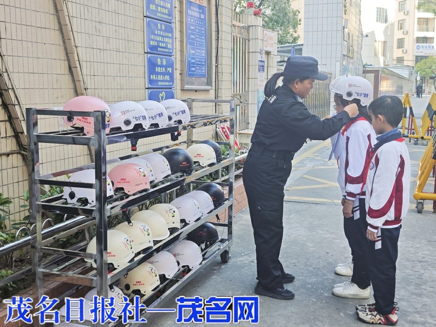 茂名晚报讯 记者 赖碧怡 通讯员 茂交宣 1月9日,茂名市公安局电白分局交管大队联合人保财险电白支公司、电白区教育局及电白区第七小学,在该校举行电白区“爱心头盔借用点”启动仪式,在校门口试点设立头盔借用点。此举作为电白区深化摩电交通安全整治的重要实践,通过多部门联动搭建暖心服务平台,有效破解校园周边出行安全痛点,为师生及家长出行筑牢安全防护网。