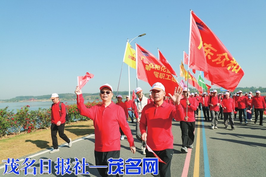 随着出发号令响起,七彩礼花鸣放,身着统一红色徒步服、头戴橙白相间遮阳帽的职工与家属们随即汇成一道朝气蓬勃的长龙,沿湖畔步道欣然前行。晴空之下,这支跃动的暖流,洋溢着锐意进取的盎然活力。