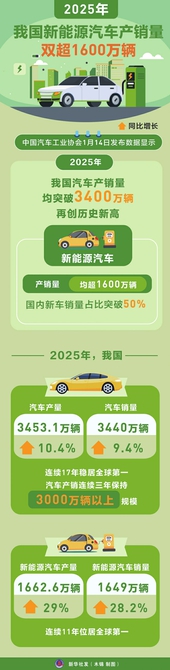 2025年我国新能源汽车产销量双超1600万辆