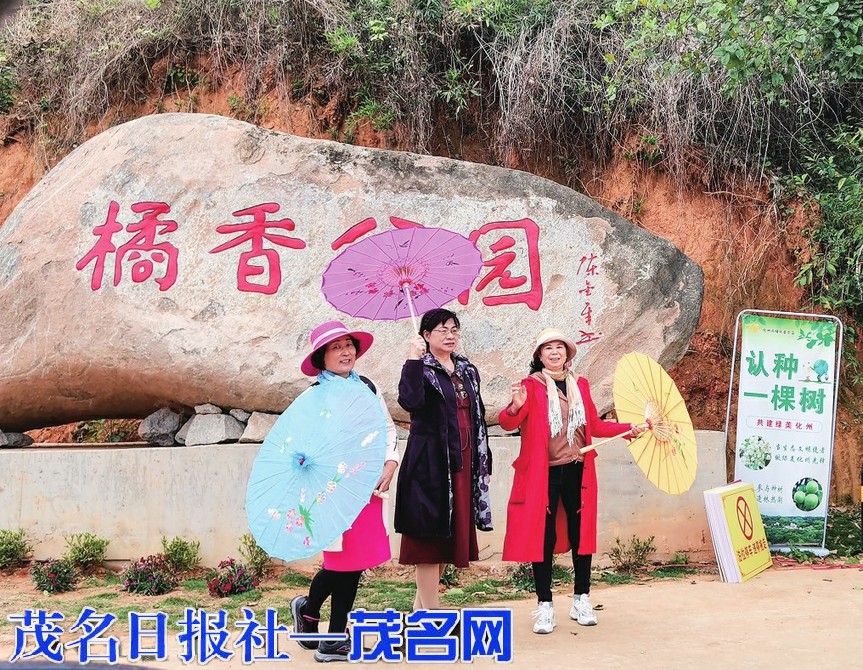 游客在化州平定镇大岭村橘香公园观光。本版图片由茂名日报社全媒体记者 岑稳 摄