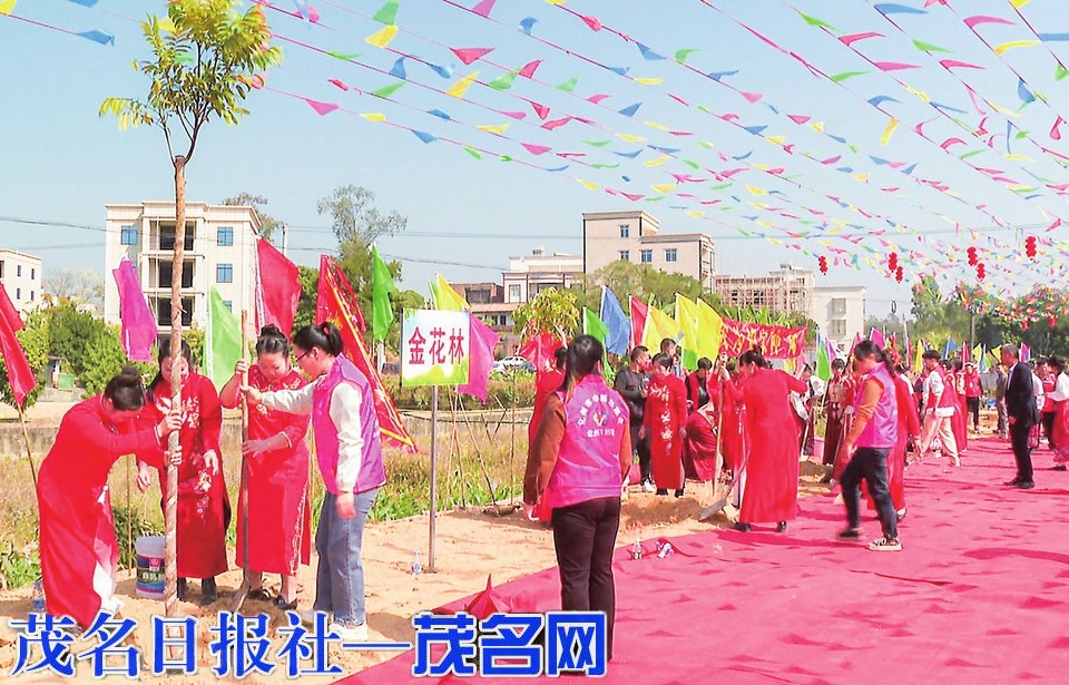 化州市妇联紧紧抓住外嫁女“思乡、感恩、回报”的情感共鸣,在春节、年例等集中返乡时段,将植树添绿与民俗节庆深度融合,大力推广“我为娘家种棵树”“有喜事来种树”等主题实践,打造“绿美年例”“文化年例”。
