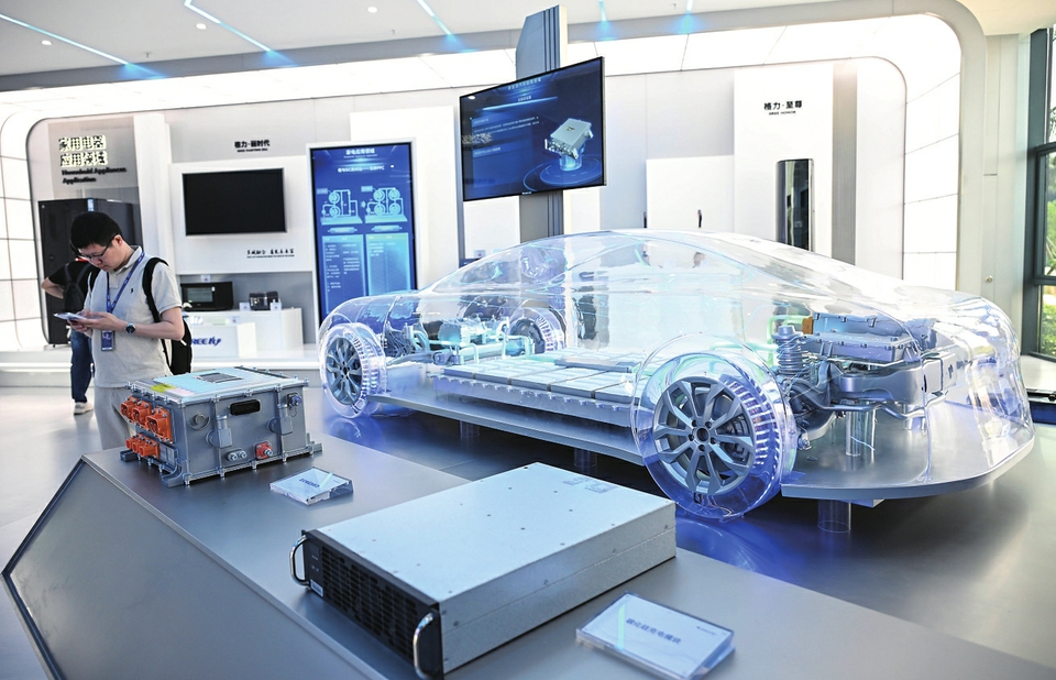 2025年4月29日在珠海格力电子元器件有限公司拍摄的新能源汽车碳化硅充电模块、驱动电机控制器。 新华社记者 邓华 摄
