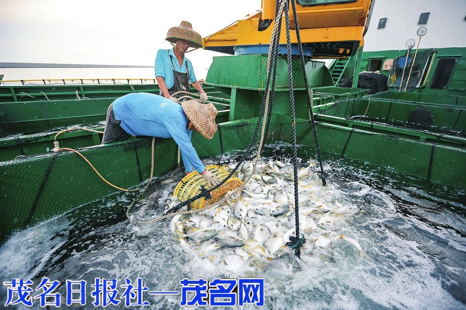 滨海新区海洋牧场金鲳鱼养殖场迎丰收。茂名日报社全媒体记者吴昊摄