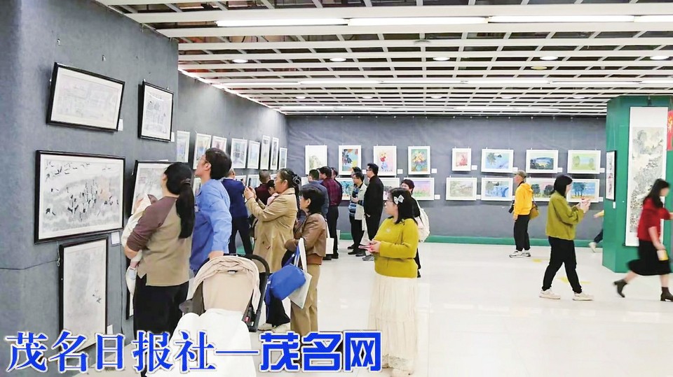 市民在观赏美术作品。茂名晚报记者 黄宇彬 摄