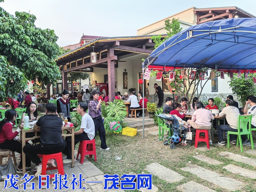 高州泗水镇滩底村迎来游客高峰。茂名晚报记者 冯小飞 摄