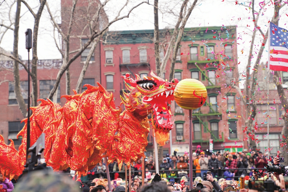2月17日,美国纽约中国城行“新春炮竹文化庙会”,舞龙、舞狮、燃放炮竹等丰富的现场活动吸引数千人前来感受浓郁的中国年味。