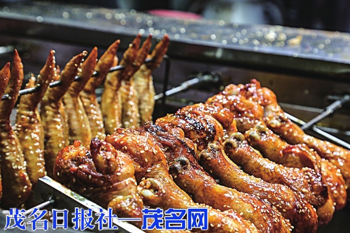 走进籺村,可见各式小吃摊一字排开,灯火璀璨、人声鼎沸,炒粉、烧烤、湿辣牛肉、化州糖水、烧鸭粉、甘蔗汁、香豆腐等地道小吃应有尽有、香气扑鼻。“我们下午三点半开摊,营业到凌晨三点半。现在过年了,很多人从外地回来,生意不错。”湿辣牛肉摊主黄老板一边忙碌一边说,欢迎大家前来籺村,品尝茂名小吃、感受茂名年味。