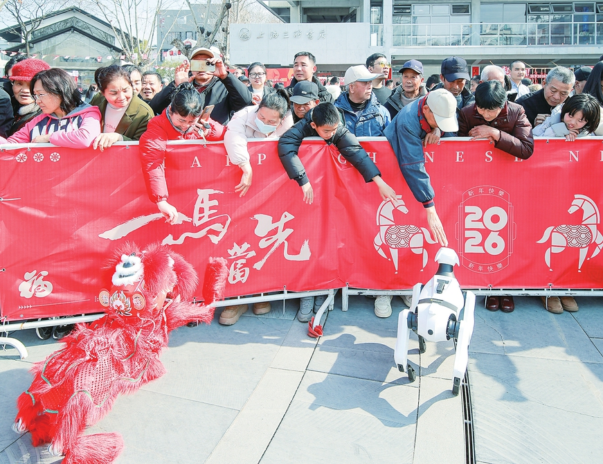 新华社合肥2月20日电(记者马姝瑞)机器人灵活地扭动着身体,为游客献上舞蹈表演,与大家合影留念;机器狗蹦蹦跳跳,时而举起机械爪向游客拜年,时而热情发声祝福游客“新年好”……春节假期,安徽省芜湖市繁昌区“繁昌·北站1969文化创意街区”十分热闹,机器人、机器狗用“卖力”的巡演,吸引游客纷纷拍照打卡。