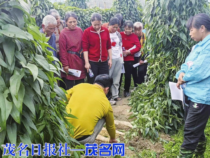 茂名晚报讯 通讯员 廖振鹏 汪军 记者 刘锋兰 近日,一场别开生面的观摩培训会,举行于化州文楼镇新德村一片开阔的淮山示范田旁。数十位来自各村落的农业干部、种植大户、合作社技术骨干围拢在一起,目光聚焦于广东省科学院南繁种业研究所农村科技特派员团队专家手中那根品相优良、长度喜人的淮山。“这根淮山,就是用了我们新推广的‘定向槽浅生栽培’技术,你们看,它条形直、表皮光、病虫害少,产量和质量都上来了。”专家一边讲解,一边用沾着泥土的手比画着土层深度和种植间距。从理论课堂到田间地头,从个体困惑到集中破解,这一幕,正是文楼镇以科技为引擎、以产销为双翼,全力推动淮山特色产业转型升级的生动缩影。