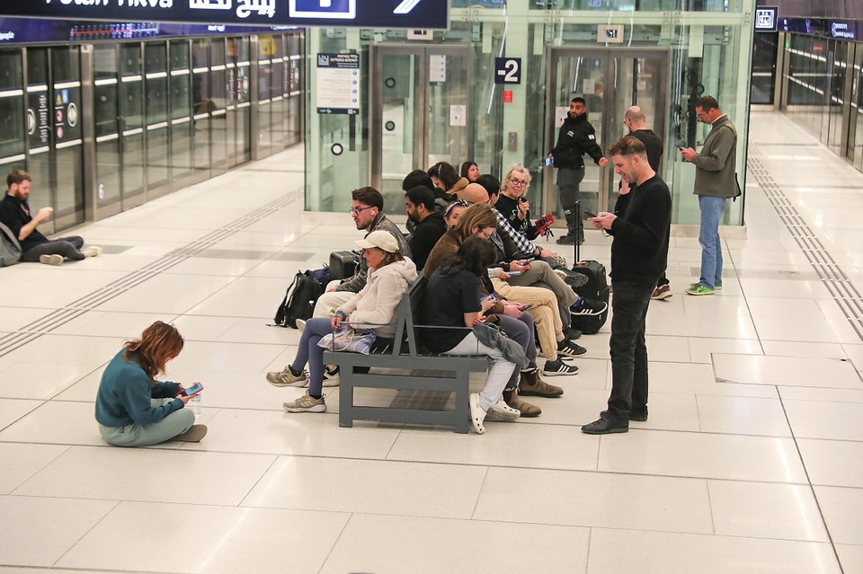 2月28日,人们在以色列特拉维夫一处地铁站躲避空袭。新华社发(吉德翁·马科维奇 摄/基尼图片社)