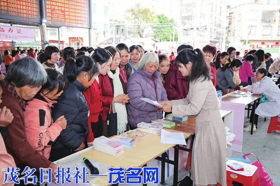 茂名晚报讯 记者 郭瑞祥 通讯员 吴小金 法治春风暖民心,巾帼服务零距离。为纪念“三八”国际妇女节,加强妇女法治宣传教育,深化妇女维权服务保障,3月4日上午,茂名市妇联联合市公安局、市司法局、市卫健局、市中级人民法院、市人民检察院、市妇幼保健院、电白区妇联、电白区司法局、沙琅镇妇联等单位,在电白区沙琅镇共同举办“维护她权益 绽放她力量”——茂名市2026年“三八”维权周暨“巾帼普法基层行”启动仪式。活动通过“专题讲座+集市服务”的模式,将法律知识、维权服务和健康关怀送到群众“家门口”,吸引了300多名妇女群众参与。