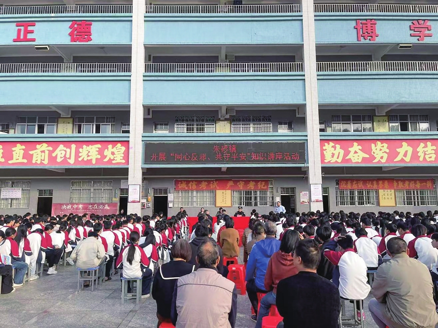 茂名晚报讯 记者 孙铭阳 通讯员 杨进楠 陈喜 为进一步加强校园反邪教宣传教育,增强青少年学生识别邪教、抵制邪教的意识和能力,筑牢校园安全防线,切实守护青少年健康成长,3月6日上午,信宜市朱砂镇平安法治办联合朱砂派出所、禁毒办等部门走进旺沙中学开展“同心反邪,共守平安”主题反邪教知识讲座,全校师生共计900余人参加此次活动。