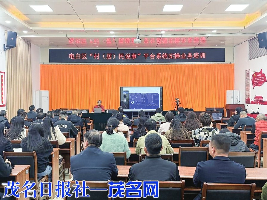 茂名晚报讯 为深化基层治理数字化转型,畅通民意诉求表达渠道,3月11日,电白区委社会工作部在电海街道组织开展“村(居)民说事”平台系统实操业务培训会,电海街道业务人员、各村(社区)“两委”干部、村(居)民小组长共60余人参会,以数字赋能夯实基层治理根基。