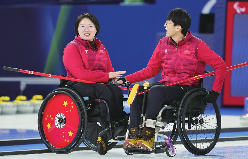 2018年平昌冬残奥会、2022年北京冬残奥会上,中国队实现轮椅冰壶混团项目两连冠。37岁的王蒙是平昌冬残奥会中国轮椅冰壶队冠军成员,本届赛事搭档首次参加冬残奥会的杨金桥出战混双。