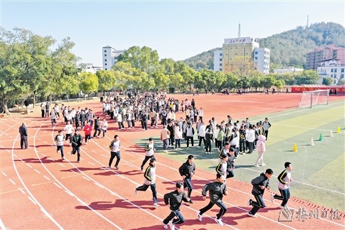 初冬时节,寒风瑟瑟。然而,在平远县城南中学新铺设的塑胶跑道上,学生们充满活力地随着老师的口令奔跑、跳跃,步伐轻快,青春无限,尽情享受运动带来的快乐与激情。“之前的操场路面坑坑洼洼,一下雨就溅起‘千层浪’,如今重新铺设了塑胶跑道,跑起步来舒适多了。”该校一名正在跑操的学生对记者说道。