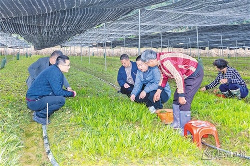 在新圩镇茶星村东阁上,连片的广藿香已经收割完毕,村民们正在大棚下为大叶石菖蒲除草。这是新圩镇借助驻镇帮镇扶村工作队资源优势引进广东合百草公司投资建设的南药种植基地,总面积约300亩,年均亩产值约6万元。由梅州市委办牵头,梅州供电局、梅州市职校、农行梅州分行共同组建了兴宁市新圩镇驻镇帮镇扶村工作队,在新圩镇党委指导下,各帮扶单位发挥自身优势,积极牵线搭桥,引进了不少项目。
