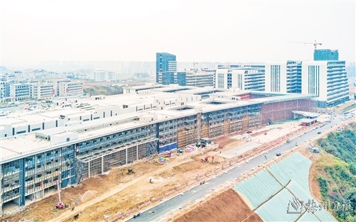 博敏电子新一代电子信息产业投资扩建项目长360米、宽80米的主体生产厂房已封顶。(林翔 摄)
