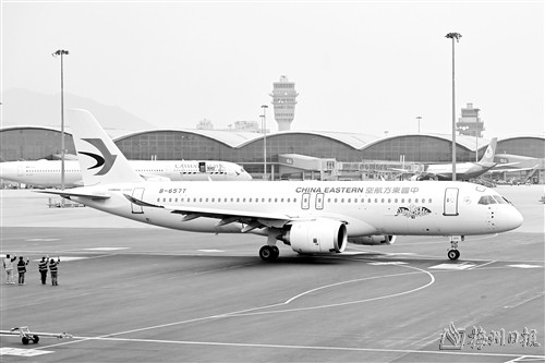 2025年1月1日,东航C919客机准备从香港国际机场起飞。(新华社发)