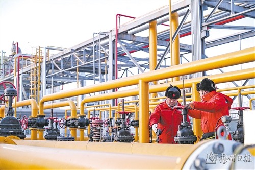 1月3日,大庆油田天然气分公司职工在对管线关键部位进行巡检。 记者1月3日从中国石油大庆油田获悉,大庆油田2024年天然气产量突破60亿立方米,同比增产1.55亿立方米,实现连续14年稳定增长。(新华社发)