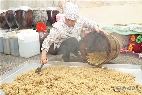 制作娘酒,须精选颗粒饱满的优质糯米,且要经过12小时浸泡,方可用饭甑蒸制。