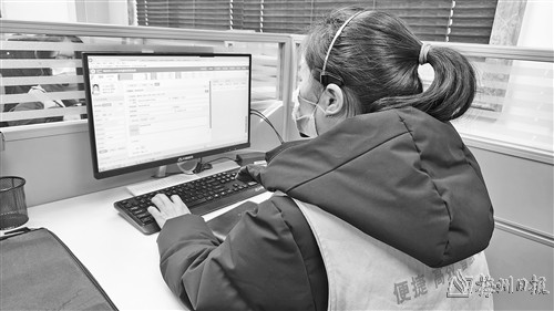 梅州市12345政务服务便民热线的工作人员正在接听市民电话。(陈坚平 摄)