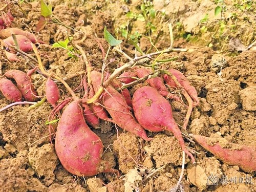 本报讯 龙村镇龙村村再下坝的五华县高山红薯基地里,一垄垄红薯随着机器走过,瞬间破土而出,满地通红,工人们将红薯分拣装筐,地里弥漫着一片丰收的喜悦。
