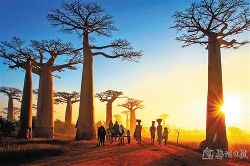 李:这是在非洲马达加斯加一个叫作面包树大道的很贫穷的村庄里面拍摄的。在那里,每当早晨太阳冉冉升起雾气散尽的时候,那些村民会从这种低矮的草房子里面出来干活,赶着牛车从面包树大道上经过。日落的时候,他们就从干活的田地上回来,男的赶着牛车满载而归,妇女头顶着箩筐,孩童蹦蹦跳跳玩耍,这个场景令我非常感动。马达加斯加是个很贫穷的地方,村民日出而作日落而息,但是从他们脸上的神情可以看出,生活的艰辛掩盖不住他们对美好生活的向往,所以那天太阳下山的时候,一辆牛车正好经过,我用相机“咔嚓”一声把这个瞬间给留存下来。这个作品为什么会被收藏呢?我觉得是他们认可这个作品里所表达的核心思想价值和作品内涵,是人类对和平对美好生活的向往。