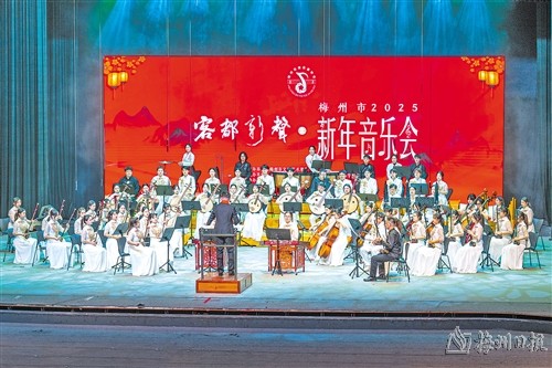本报讯 (记者赖运香)1月8日晚,由市文联指导,市音乐家协会、嘉应学院音乐与舞蹈学院主办,中国农业银行梅州分行协办的“客都新声·梅州市2025新年音乐会”在梅城亮胜客家艺术中心举行(如上图,何志林摄),为广大市民奉上了一场精彩的艺术盛宴。